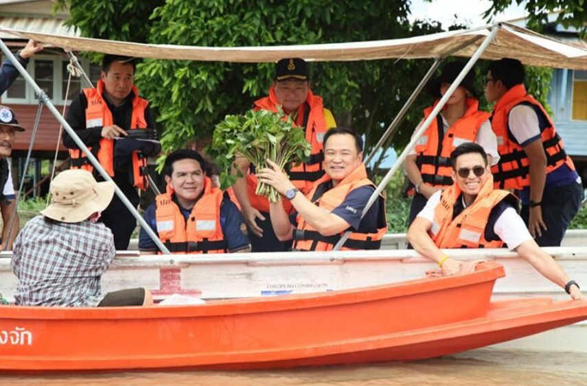 ระหว่างล่องเรือ นายกฯได้โบกมือทักทาย และชูนิ้วโป้งให้กำลังใจประชาชนริมฝั่งน้ำ ซึ่งบางคนก็ชูนิ้วโป้งตอบและถ่ายรูปเก็บไว้ นายอนุทินกล่าวระหว่างลงพื้นที่ว่า “ปีนี้น้ำท่วมน้อยกว่าปีก่อน เพราะมีการเตรียมการตั้งแต่ต้นปี”