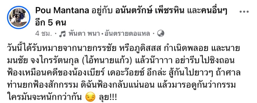ล่าสุด 2 พฤศจิกายน 68 ปูมัณฑนา ได้ออกมาโพสต์ภาพตนเอง พร้อมหมายศาล โดยระบุแคปชั่นข้อความว่า “วันนี้ได้รับหมายจากนายกรรชัย หรือภูดิสสส กำเนิดพลอย และนายมนชัย จงไกรรัตนกุล (ไอ้ทนายแก้ว) แล้วน๊าาาา อย่ารีบไปชิงถอนฟ้องเหมือนคดีของน้องเบียร์ เดอะว๊อยซ์ อีกล่ะ สู้กันไปยาวๆ ถ้าศาลท่านยกฟ้องสักกรรม ดิฉันฟ้องกลับแน่นอน แล้วมารอดูกันว่ากรรมใครมันจะหนักกว่ากัน ”