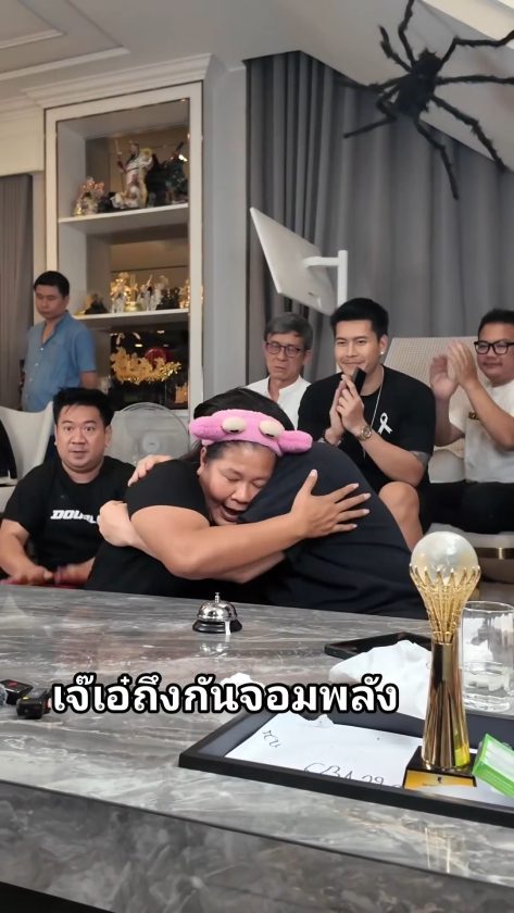 หลังจากพูดจบ กัน จอมพลัง ก็ได้ลุกขึ้นจากที่นั่งและเดินเข้าไปสวมกอดเจ๊เอ๋อย่างอบอุ่นและซาบซึ้ง ท่ามกลางเสียงปรบมือจากคนรอบข้าง นับเป็นภาพแห่งมิตรภาพที่น่าประทับใจเป็นอย่างยิ่ง