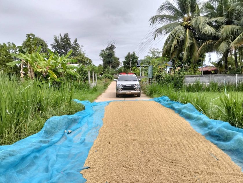 สายตรวจตำบลเขต 1 ได้รับแจ้ง กรณีตากข้าวบนถนน ทำให้รถไม่สามารถสัญจรได้ จึงลงพื้นที่ และได้ดำเนินการตรวจสอบ