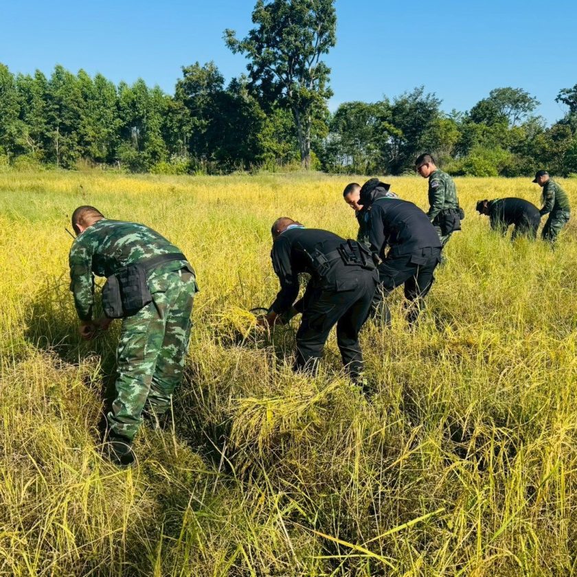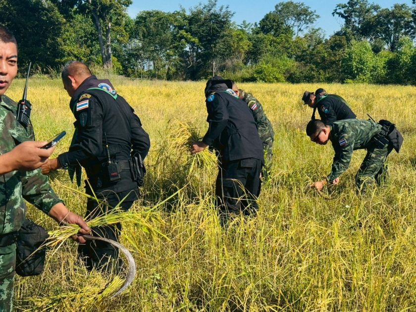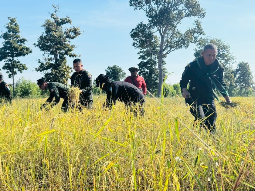 ด้าน พ.อ. ชัยณรงค์ กาสี ผู้บังคับหน่วยเฉพาะกิจที่ 12 กองกำลังบูรพา ได้จัดกำลังพลหลายสิบนาย มาคุ้มกันรักษาความปลอดภัยให้กับประชาชน ที่จะเข้ามาเก็บเกี่ยวข้าว ในที่นาที่อยู่ในแนวประชิดชายแดน ช่วงหลักหมุดที่ 41 ที่บ้านหนองหญ้าแก้ว ตำบลโคกสูง อำเภอโคกสูง จังหวัดสระแก้ว ซึ่งนอกจากจะรักษาความปลอดภัยแล้ว วันนี้ทหารได้จับเคียวเกี่ยวข้าวช่วยชาวบ้าน ในพื้นที่นาบางส่วนที่รถเกี่ยวข้าวไม่สามารถเข้ามาทำงานได้ สร้างความมั่นใจให้กับชาวบ้านว่า จะสามารถเกี่ยวข้าวได้อย่างปลอดภัย