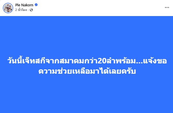 หนึ่งในผู้ที่ลงพื้นที่ช่วยเหลือผู้ประสบภัยคือ “เปิ้ล นาคร ศิลาชัย” ซึ่งได้โพสต์ข้อความผ่านเฟซบุ๊กส่วนตัว ระบุว่า “วันนี้เจ็ทสกีจากสมาคมกว่า 20 ลำพร้อม…แจ้งขอความช่วยเหลือมาได้เลยครับ” เพื่อเสริมกำลังเจ้าหน้าที่และช่วยรับ–ส่งประชาชนออกจากพื้นที่เสี่ยง