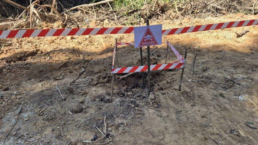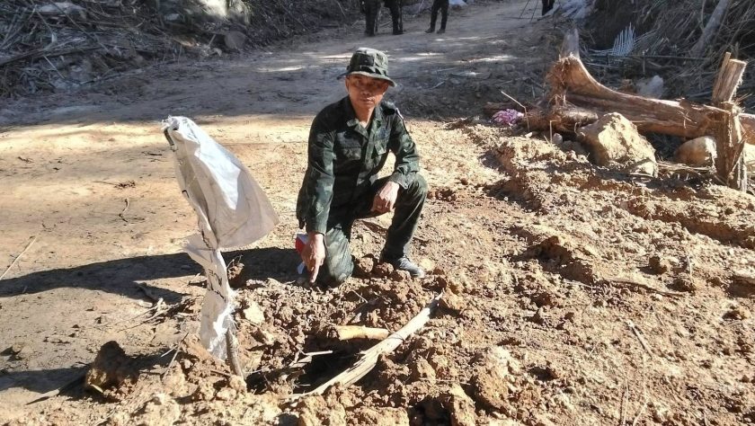 ในแนวทุ่นระเบิดเดิมที่ฝ่ายกัมพูชาวางไว้เพื่อชะลอหรือป้องกันการรุกไล่ติดตามของฝ่ายเราในห้วงที่พื้นที่ยังไม่สามารถควบคุมได้อย่างสมบูรณ์ ก่อนที่ฝ่ายเราจะเข้าควบคุมพื้นที่ได้ในเวลาต่อมา