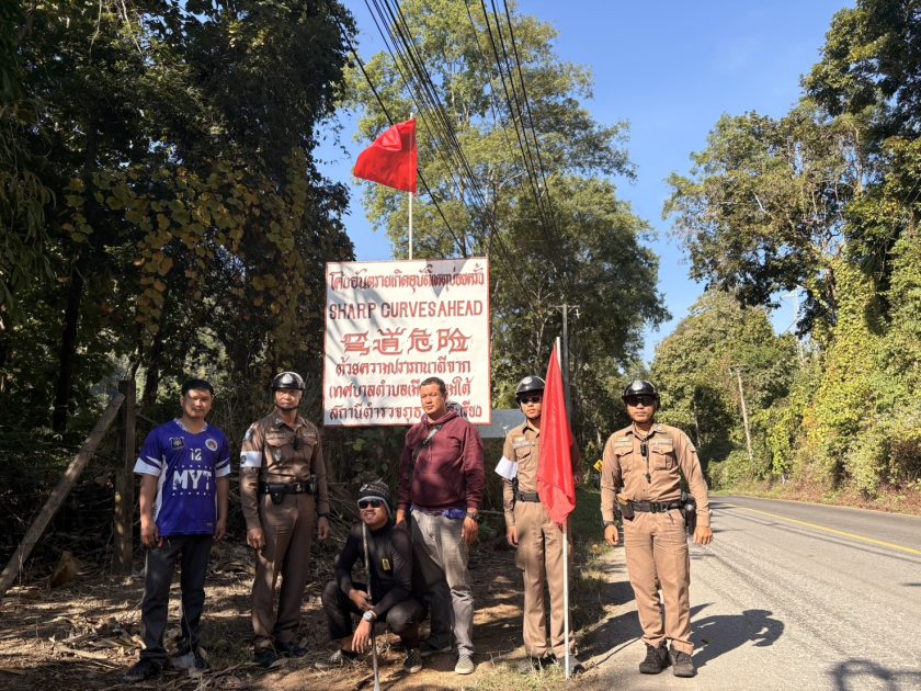 โดยได้ลงพื้นที่จุดเสี่ยงอุบัติเหตุตามเส้นทางสายหลักในเขตอำเภอแม่สะเรียง เพื่อทำการติดตั้งธงแดงและป้ายเตือน “โค้งอันตราย” รวม 12 จุด ประกอบด้วย