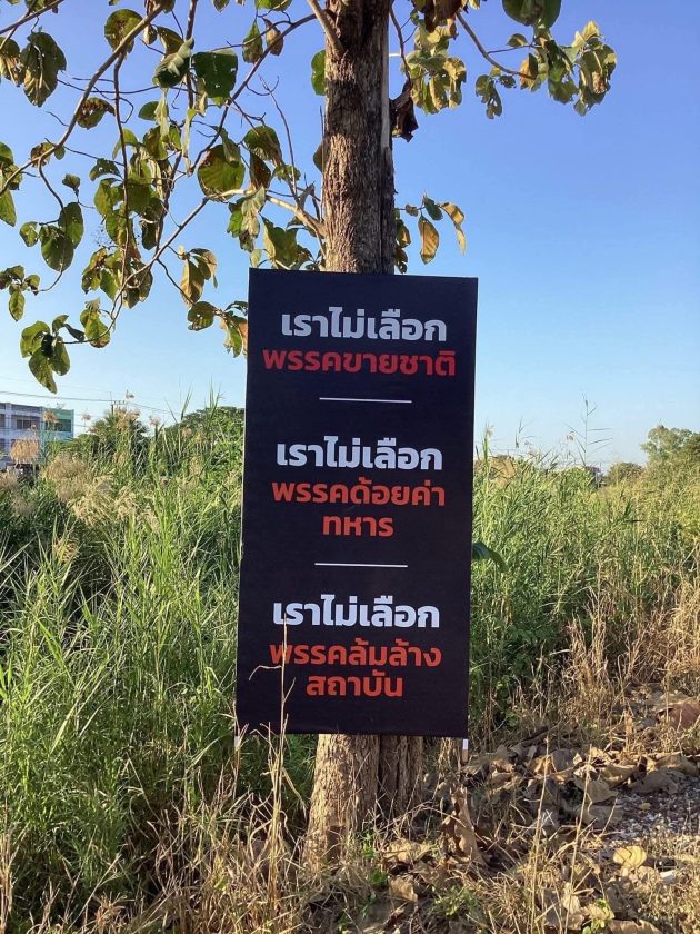 นายณัฐพงษ์ เรืองปัญญาวุฒิ หรือ “เท้ง” หัวหน้าพรรคประชาชน ให้สัมภาษณ์กรณีพบป้ายข้อความโจมตีพรรคประชาชน ระบุว่า “ไม่เอาพรรคประชาชนเขมร” ติดตั้งในพื้นที่จังหวัดพิษณุโลก โดยระบุว่า ยังไม่ทราบว่าผู้ที่ทำป้ายดังกล่าวเป็นใคร หรือเกี่ยวข้องกับพรรคการเมืองหรือกลุ่มการเมืองใด