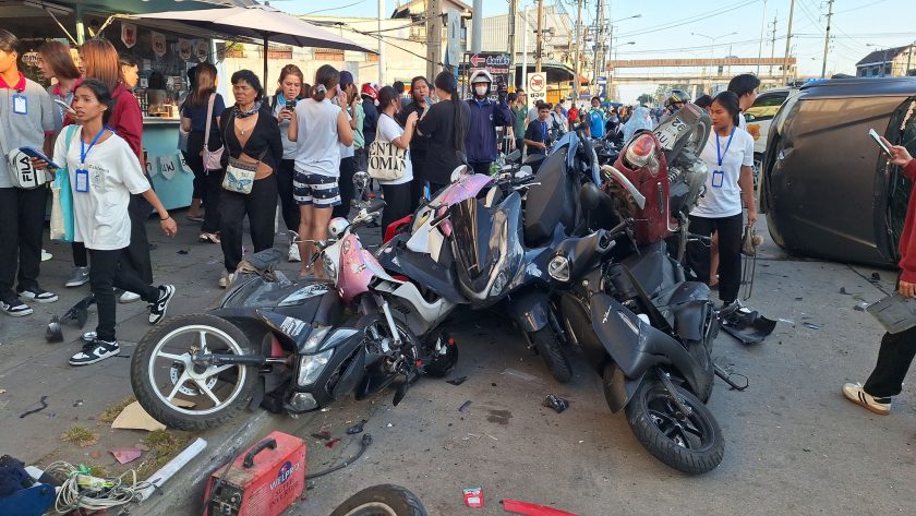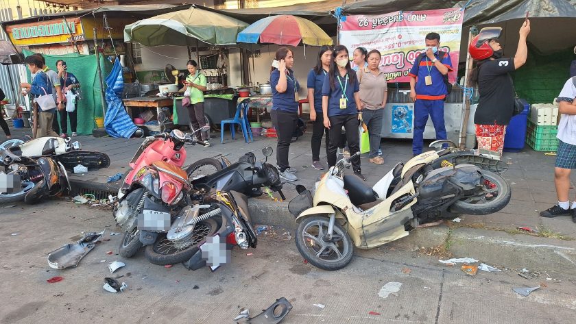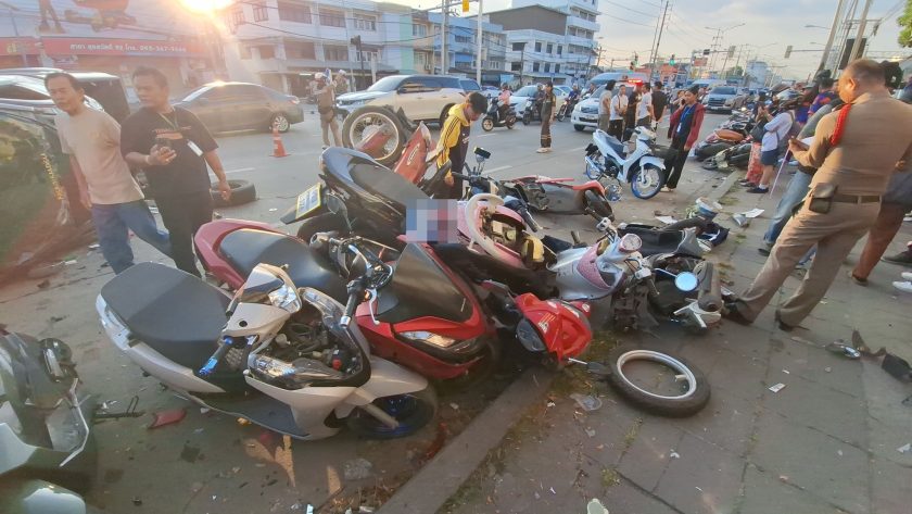 เกิดอุบัติเหตุระทึกบนถนนสุขสวัสดิ์ จังหวัดสมุทรปราการ เมื่อรถกระบะคันหนึ่งเสียหลักพุ่งชนรถจักรยานยนต์ที่จอดเรียงรายอยู่ริมฟุตบาทหน้าบริษัทเอกชน ส่งผลให้รถจักรยานยนต์ล้มระเนระนาดเสียหายมากกว่า 30 คัน หลายคันพังยับเยินจนแทบจำสภาพเดิมไม่ได้ ขณะที่รถกระบะคู่กรณีพลิกตะแคงอยู่กลางถนน
