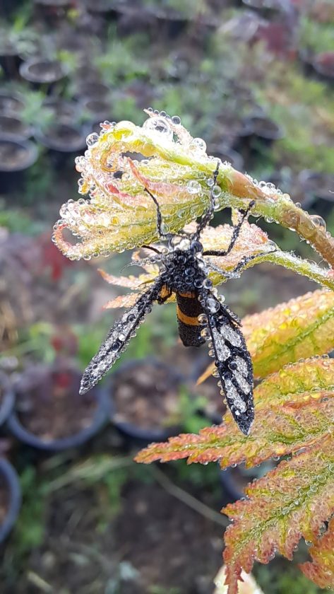 ขณะเดียวกัน ผู้ใช้เฟซบุ๊กรายหนึ่งยังโพสต์ภาพความสวยงามของหยดน้ำค้างที่เกาะบนใบเมเปิ้ลและตัวผีเสื้อ รวมถึงไอน้ำที่ลอยฟุ้งเหนือลำคลองหลังบ้าน จากอุณหภูมิยอดหญ้าที่แตะระดับติดลบเช่นเดียวกัน สะท้อนถึงความหนาวจัดที่ปกคลุมพื้นที่ในช่วงเช้า