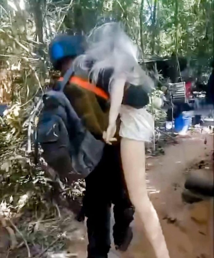 เพจเฟซบุ๊ก “ไดอารี่ทหารพราน” เผยแพร่คลิปเหตุการณ์ชวนตกใจ ขณะทหารไทยเข้าปฏิบัติภารกิจสถาปนาพื้นที่และเคลียร์ฐานทหารกัมพูชา ก่อนจะพบร่างผู้หญิงผมสีบลอนด์นอนอยู่ในพื้นที่ สร้างความแตกตื่นให้กับกำลังพลในคลิป