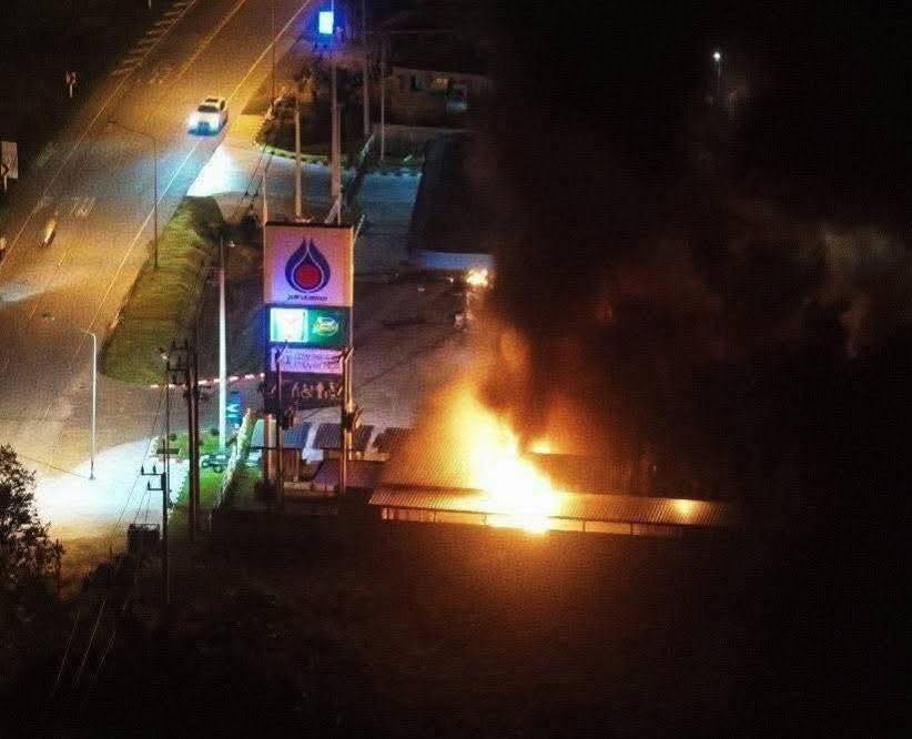กลางดึกวันที่ 11 ม.ค. เกิดเหตุคนร้ายลอบวางเพลิงและลอบวางระเบิดในหลายพื้นที่ของ 3 จังหวัดชายแดนภาคใต้ ส่งผลให้ทรัพย์สินเสียหายจำนวนมาก โดยเฉพาะสถานีบริการน้ำมัน ปตท. ได้รับความเสียหายรวม 11 แห่ง