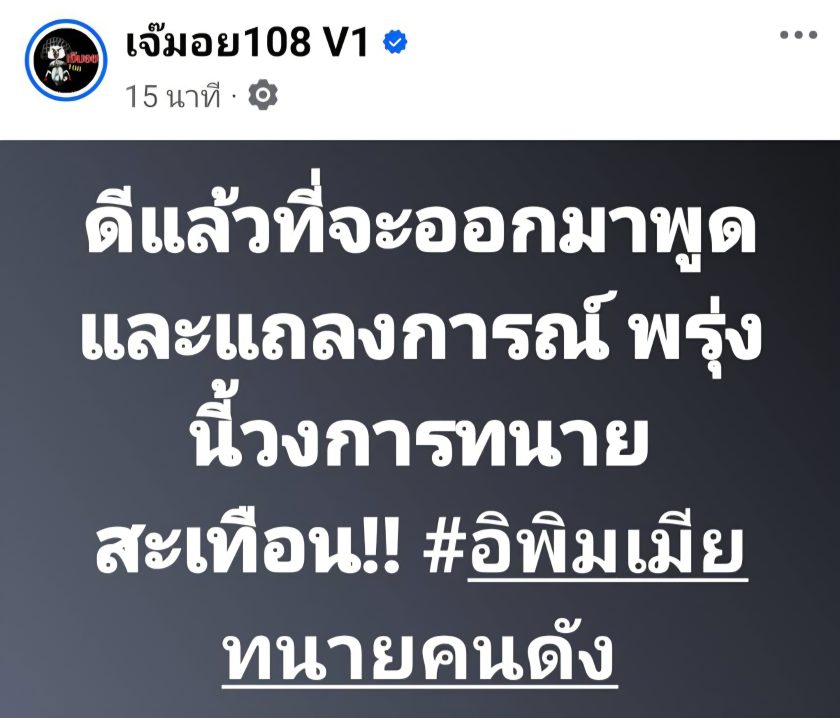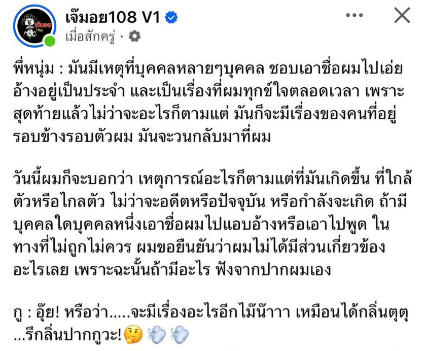 ในขณะเดียวกัน ประเด็นนี้ได้ลุกลามไปถึงคนดังในวงการสื่ออย่าง “หนุ่ม กรรชัย กำเนิดพลอย” หลังจากพบว่ามีบุคคลพยายามนำชื่อของตนไปแอบอ้างเพื่อให้เกิดความน่าเชื่อถือหรือเกี่ยวข้องกับเหตุการณ์ต่างๆ โดยเพจ “เจ๊มอย 108 V1” ได้เผยแพร่ข้อความจากหนุ่ม กรรชัย ที่ระบุว่า: