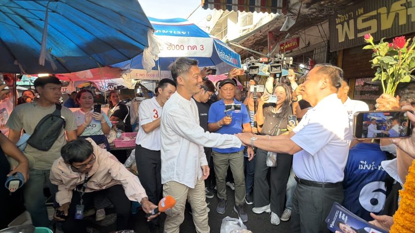 นายธนาธร สอบถาม ว่า นายอนุทิน จะเดินไปทางไหน จะได้แยกกันหาเสียง เช่นเดียวกับมผู้สมัคร สส.เขต 1 ของทั้ง 2 พรรค นายทรงพล และ นายทวิวงศ์ โตทวิวงศ์ ผู้สมัคร สส.เขต 1 พรรคประชาชน ได้จับมือทักทายกันด้วย