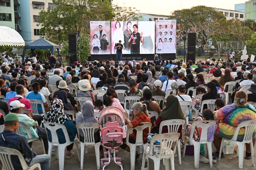 ก่อนเริ่มการปราศรัย ผู้สมัคร สส. และประชาชนร่วมยืนถวายความอาลัยแด่สมเด็จพระพันปีหลวง พร้อมทั้งยืนเคารพธงชาติ บรรยากาศเป็นไปอย่างคึกคัก มีประชาชนเดินทางมาร่วมรับฟังปราศรัยเป็นจำนวนมาก พร้อมอบดอกกุหลาบ และพวงมาลัยดาวเรืองให้กำลังใจผู้ขึ้นเวทีปราศรัยอย่างเป็นกันเอง