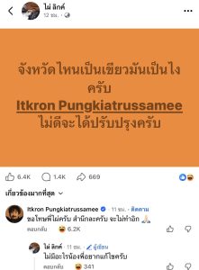 โดยทาง จ๋าย ได้เข้ามาตอบในโพสต์ดังกล่าวว่า ขอโทษพี่ไผ่ครับ สำนึกละครับ จะไม่ทำอิก โดยมีชาวเน็ตเข้ามากดหัวเราะคอมเมนต์ของ จ๋าย จำนวนมากก่อนที่ ไผ่ ลิกค์ จะตอบกลับว่า ไม่มีอะไรน้อง พี่อยากแก้ไขครับ