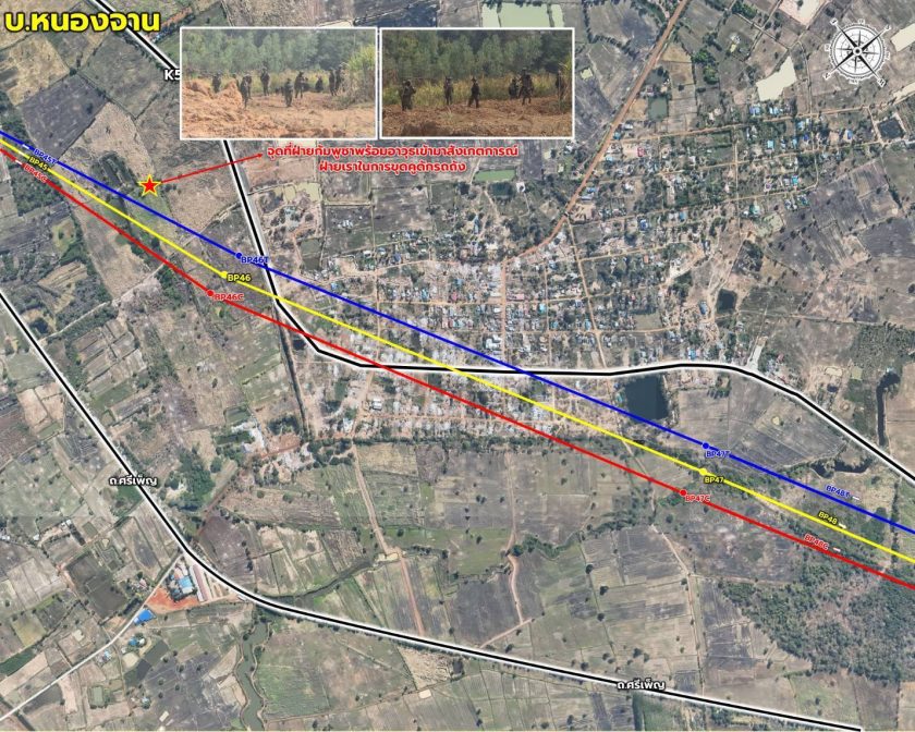 ทหารกัมพูชา 13 นายพร้อมอาวุธครบมือประจันหน้าทหารไทย บริเวณบ้านหนองจาน ขณะกำลังขุดคูดักรถถัง กองกำลังบูรพาประสานด่วนฝั่งกัมพูชาให้สั่งสอนลูกน้อง ห้ามแสดงพฤติกรรมก่อกวนหรือพูดจายั่วยุเด็ดขาด หวั่นสถานการณ์บานปลาย ล่าสุดทหารไทยยังคุมเข้มพื้นที่ ยันเหตุการณ์กลับสู่ภาวะปกติแต่ไม่ประมาท