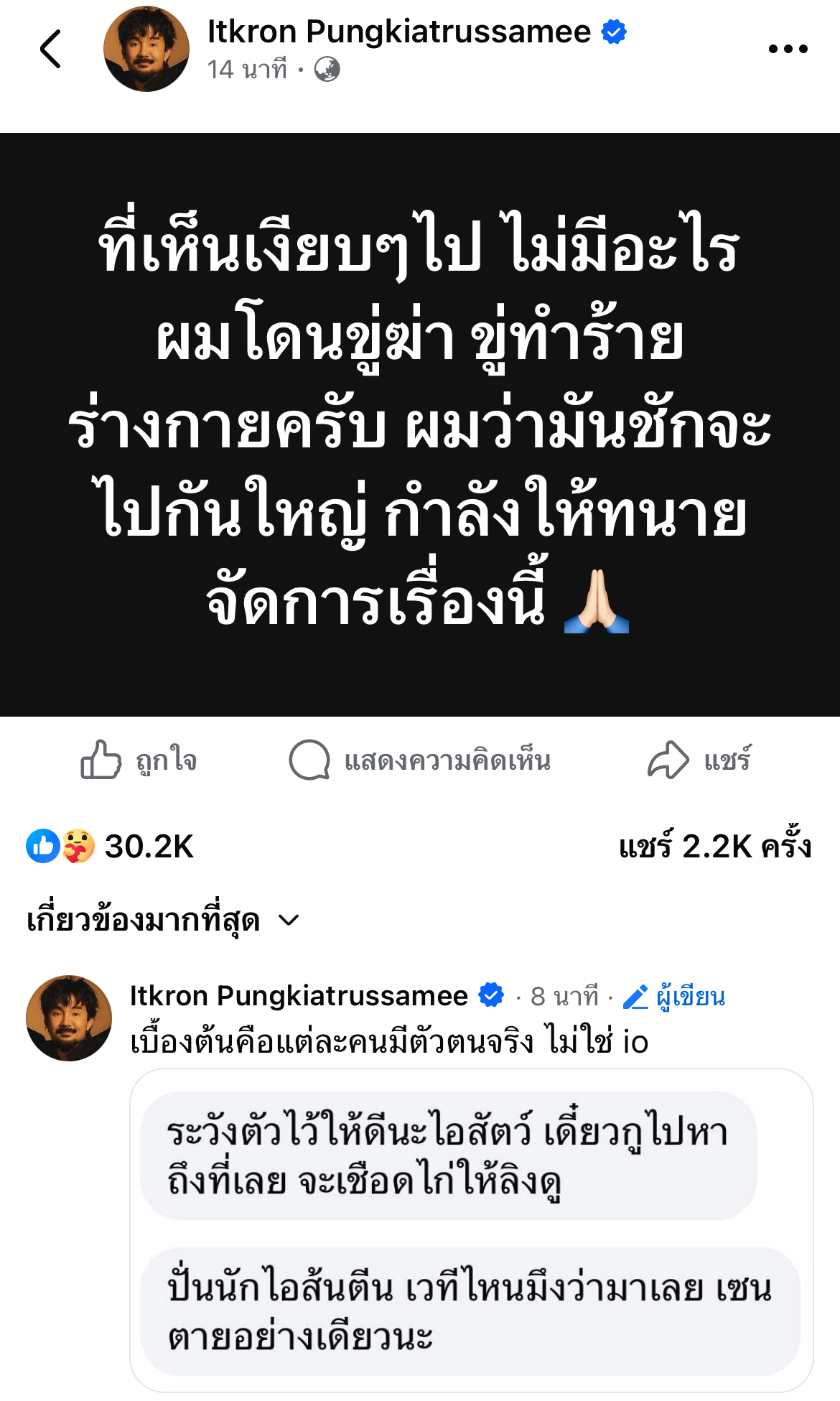 หลังจากโพสต์นี้ถูกโพสต์ไปคนดังก็เข้ามาคอมเมนต์หนึ่งในนั้นคือ ไอซ์ รักชนก