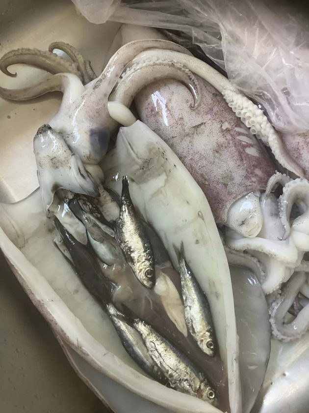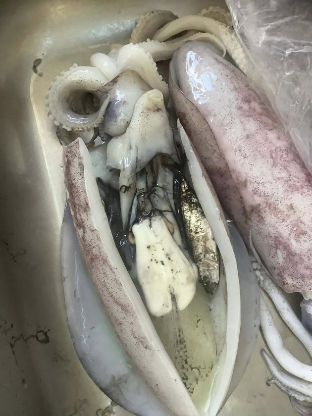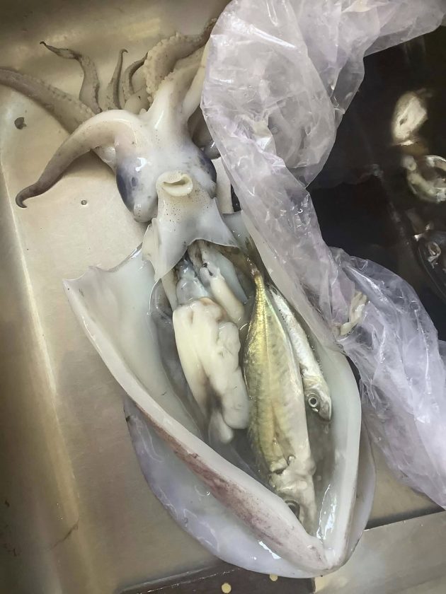 หญิงรายหนึ่งเล่าว่า ได้ซื้อปลาหมึกตัวใหญ่จากตลาดย่านฉลอง จ.ภูเก็ต จำนวน 3 ตัว น้ำหนักรวม 4 กิโลกรัม ราคากิโลกรัมละ 380 บาท เมื่อกลับบ้านและผ่าทำความสะอาด พบว่าทั้ง 3 ตัวมีปลาอยู่ในท้องทุกตัว ได้แก่