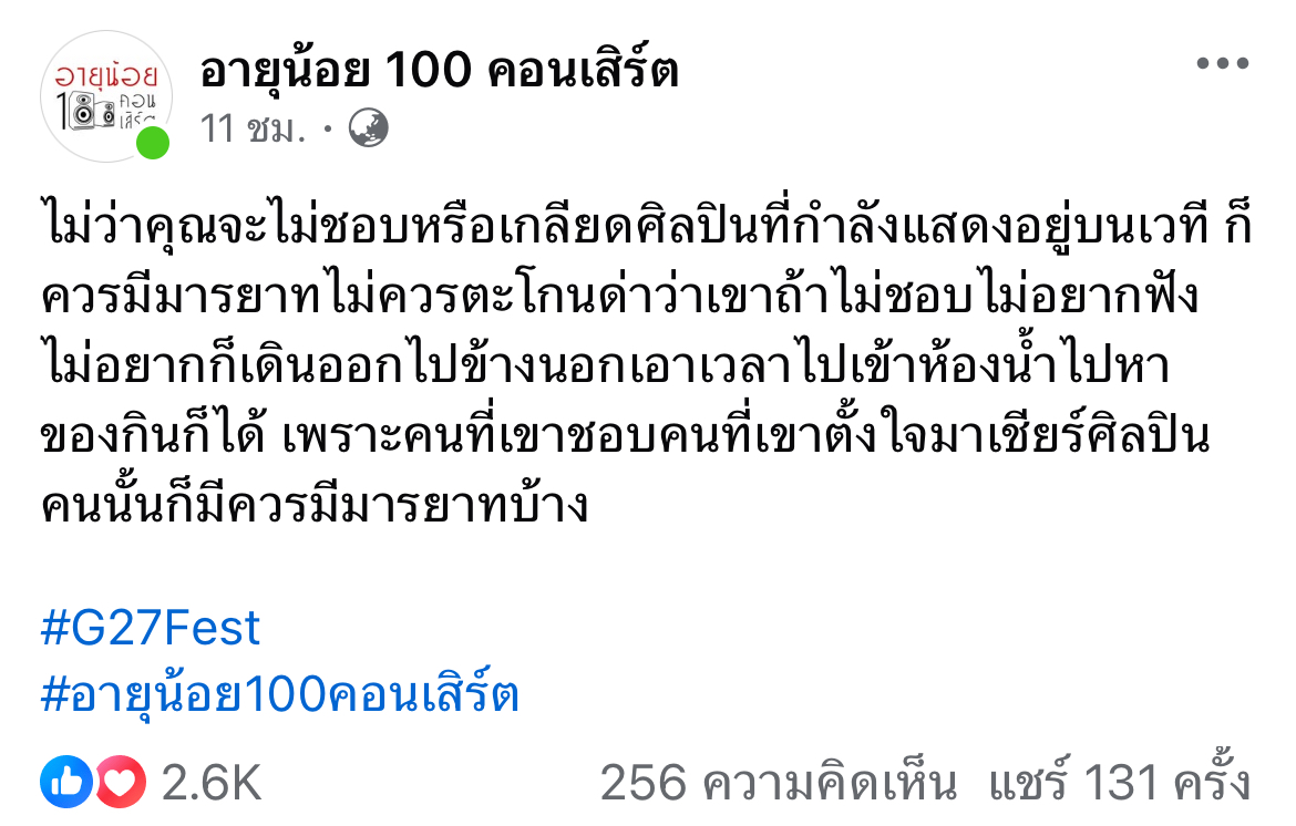 เกาะติดข่าวดาราก่อนใคร กดติดตาม “ทีวีพูล” ดราม่าจนได้หลังหลังจบคอนเสิร์ต G27 ล่าสุดทางเพจดังอย่าง อายุน้อย 100 คอนเสิร์ต ก็ได้โพสต์ข้อความถึงคอนเสิร์ตครั้งนี้ ช่วงที่ หนุ่ม กะลา ขึ้นโชว์