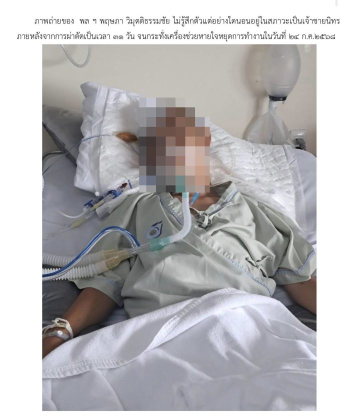กระทั่งวันที่เกิดเหตุ พลทหารพฤษภาล้มตกจากแปลนอนใต้ถุนอาคาร เพื่อนเข้าช่วยเหลือ ก่อนถูกนำตัวส่ง โรงพยาบาลภูมิพลอดุลยเดช แพทย์แจ้งว่าไม่มีชีพจรและสมองตาย แม้ทำการกู้ชีพอย่างเต็มที่ โดยให้โอกาสรอดเพียง 0.01% ครอบครัวตัดสินใจให้ผ่าตัดด้วยความหวัง แม้แพทย์ระบุโอกาสรอดต่ำมาก สุดท้ายผู้ป่วยอยู่ในภาวะไม่รู้สึกตัวต่อเนื่อง 1 เดือน ก่อนเสียชีวิตในวันที่ 1 กรกฎาคม 2568