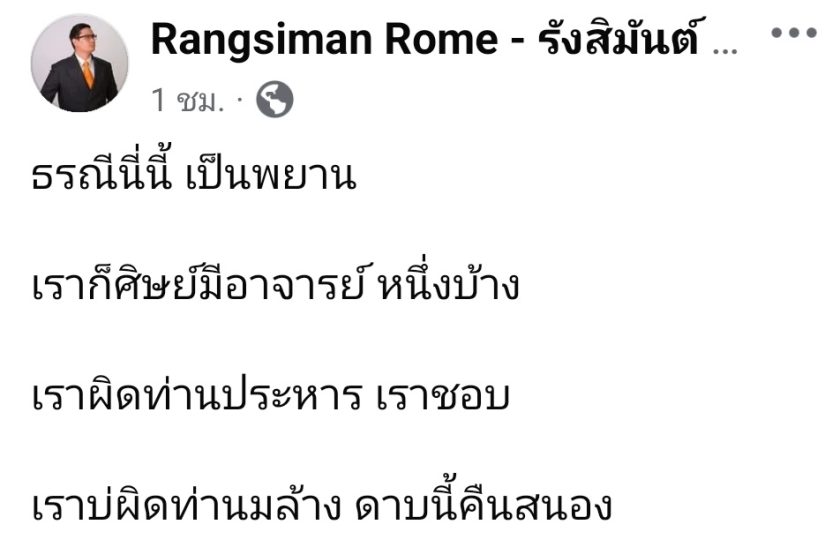 เอาแล้วค่ะขาเผือกทั้งหลาย! วงการการเมืองร้อนฉ่าดั่งไฟเออร์ เมื่อตัวตึงอย่าง “รังสิมันต์ โรม” ออกมาโพสต์เฟซบุ๊กสะเทือนเลื่อนลั่น ยกโคลงในตำนานของ “ศรีปราชญ์” มาประกาศกร้าวกลางโซเชียลว่า “ธรณีนี่นี้ เป็นพยาน เราก็ศิษย์มีอาจารย์ หนึ่งบ้าง…” งานนี้ทำเอาชาวเน็ตตาลุกวาว เพราะความหมายมันช่างลึกซึ้งและดุเดือด เหมือนเป็นการส่งสัญญาณอะไรบางอย่างหรือเปล่าคะคุณขาาา!