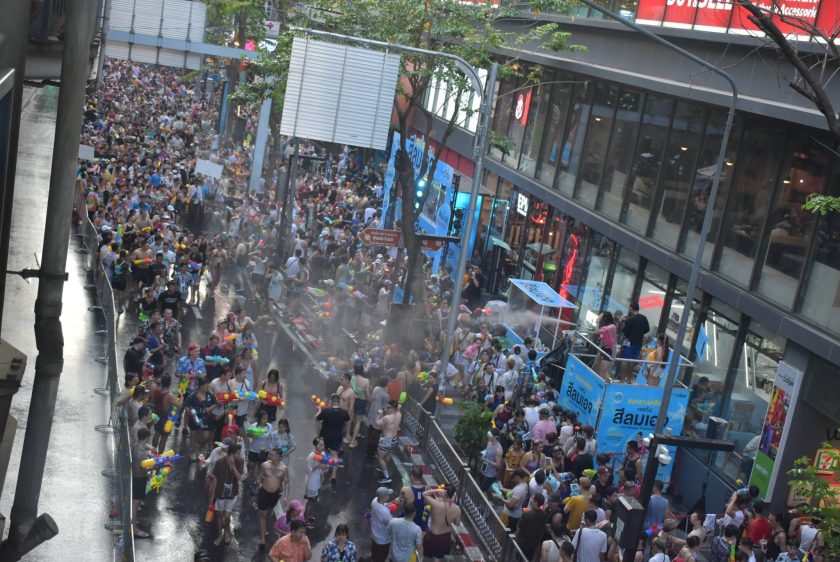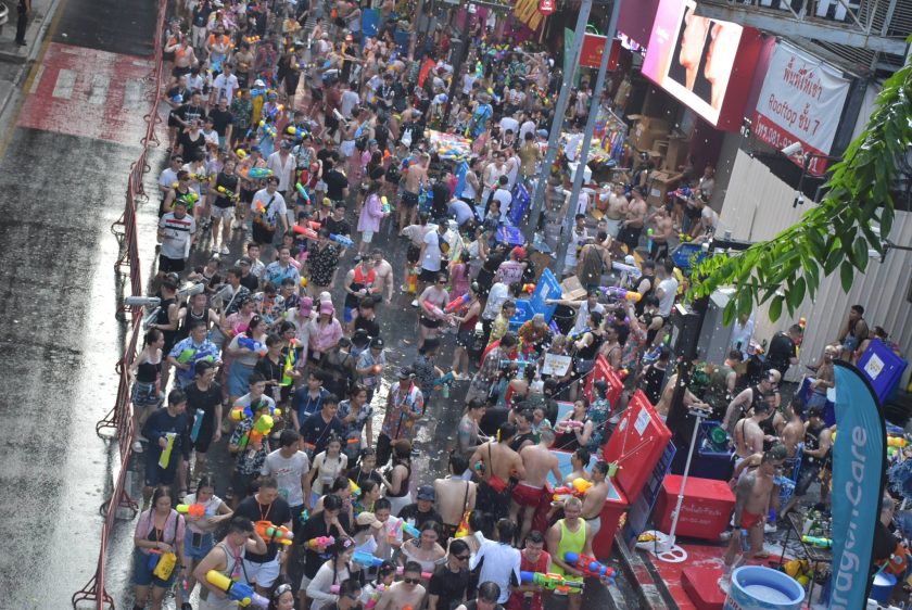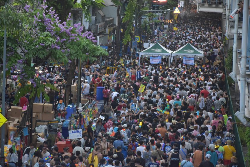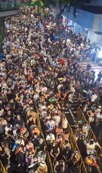 ประชาชนและนักท่องเที่ยวทั้งชาวไทยและชาวต่างชาติ ต่างหลั่งไหลเข้าร่วมกิจกรรมอย่างหนาแน่นตลอดแนวถนน ท่ามกลางสภาพอากาศร้อนอบอ้าวที่เอื้อต่อการออกมาเล่นน้ำคลายร้อน